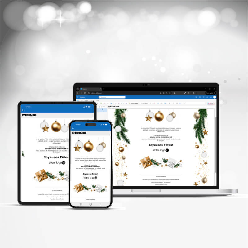 Personnalisez votre carte à votre image : couleurs, logo, coordonnées et message de vœux.